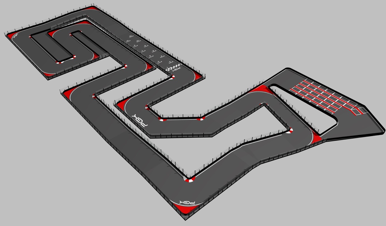 Una pista sopraelevata con kart elettrici di ultima generazione che corrono su un circuito lungo quasi 500 metri sospeso a 6 metri di altezza, sopra le giostre del parco.